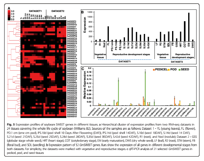 Patil G. ?et al. Soybean (Glycine max) SWEET gene family: insights through comparative genomics, transcriptome profiling and whole genome re-sequence analysis. BMC Genomics. 2015