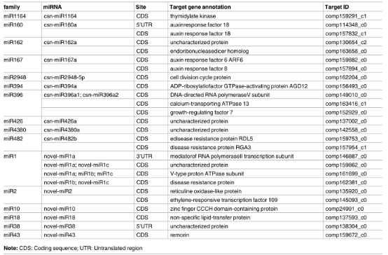 表1.通過降解組測序鑒定茶樹1005中miRNA靶向基因